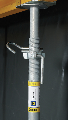 The Tobler Flex prop meets load classes D and E according to EN 1065. It stands out by its low net weight with a high load capacity of up to 41 kN.