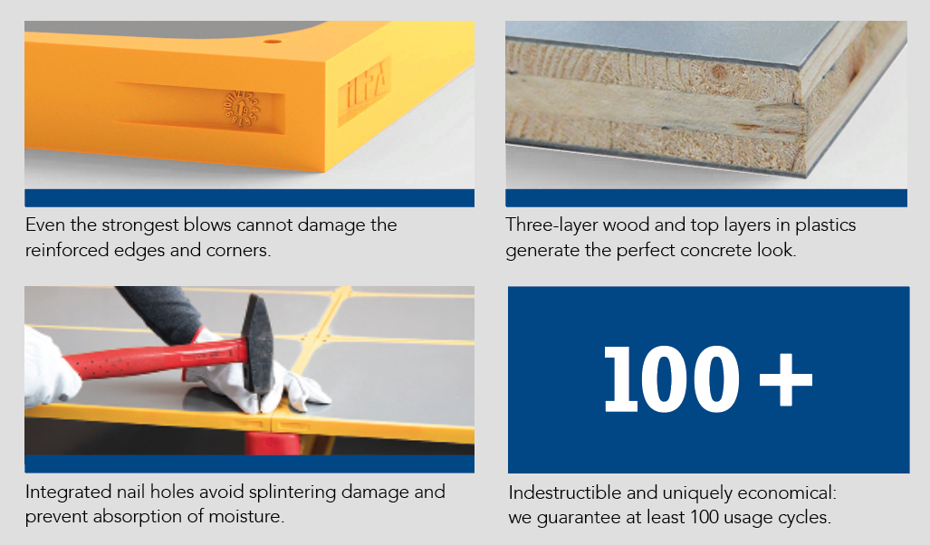 A conventional formwork panel just lasts around 10 uses before it already has to be replaced.